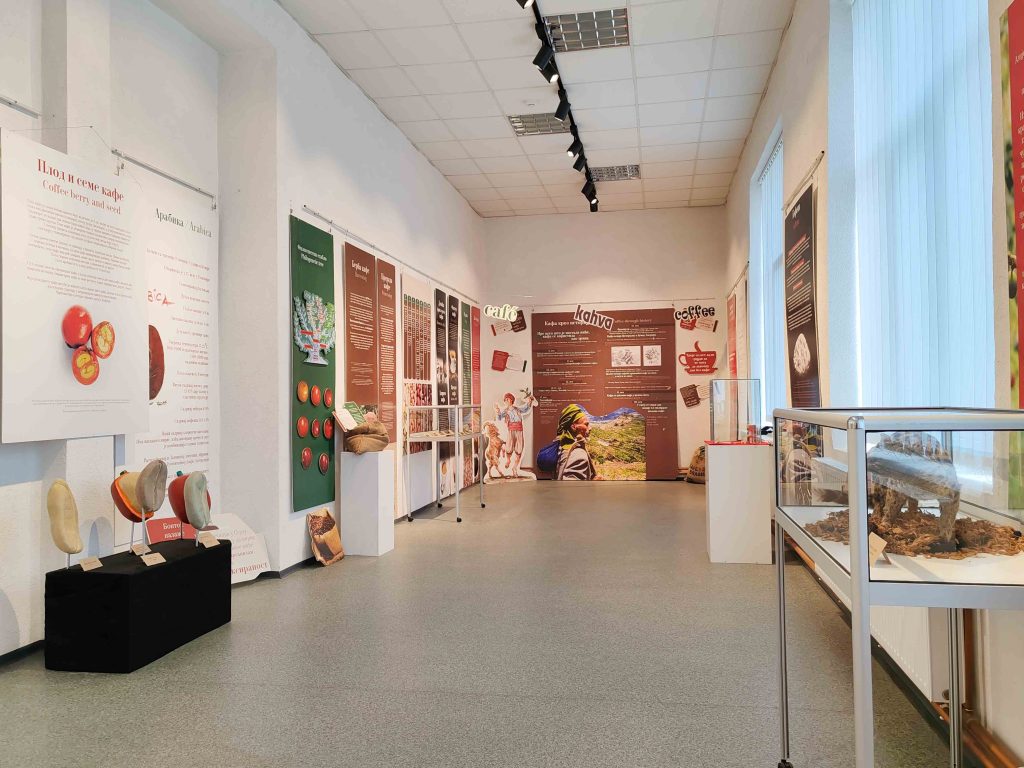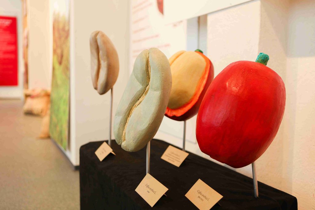 Uz modele ploda i zrna kafe, izložba otkriva ceo put zrnca koje budi svet. Poseban deo posvećen je ritualu ispijanja kafe, prikazanom kroz originalne šoljice i posuđe iz različitih epoha i kultura.