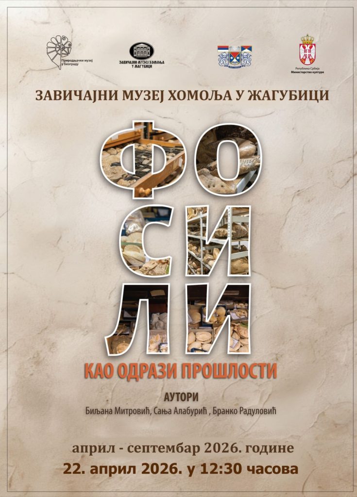 U Zavičajnom muzeju Homolja u Žagubici u sredu 22. aprila sa početkom u 12:30 časova biće svečano otvorena izložba Prirodnjačkog muzeja pod nazivom “Fosili kao odrazi prošlosti”, autora Biljane Mitrović, Sanje Alaburić i Branka Radulovića.